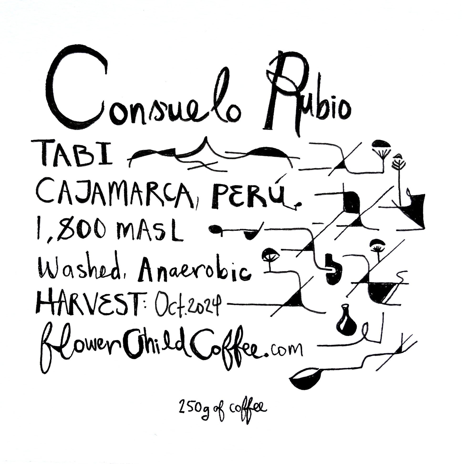 Mrs. Consuelo Rubio Peralta produces coffee with her family as a team effort. After the passing of her husband some years ago the family had to decide if they wanted to continue with the coffee business. The prossibility to work with specialty coffee motivated her children (all 24+ years old) to move back from the city to the farm & boost the family operation. With the support of her children Richard, Roxana and Blanca Flor, she has developed their Sidra and Tabi cultivars to a new level, experimenting with different fermentation processes. Her infrastructure and knowledge allows them to ensure a consistent sustainable supply and represent an oportunity to prove that coffee agriculture can be an opportunity for younger generations. This was a 24hour water-immersion fermentation in the barrel, making for a super thorough wash. Dried on raised beds until moisture hit around 10.5%.